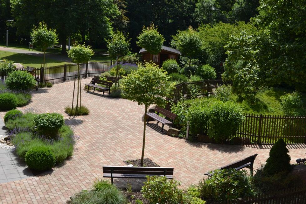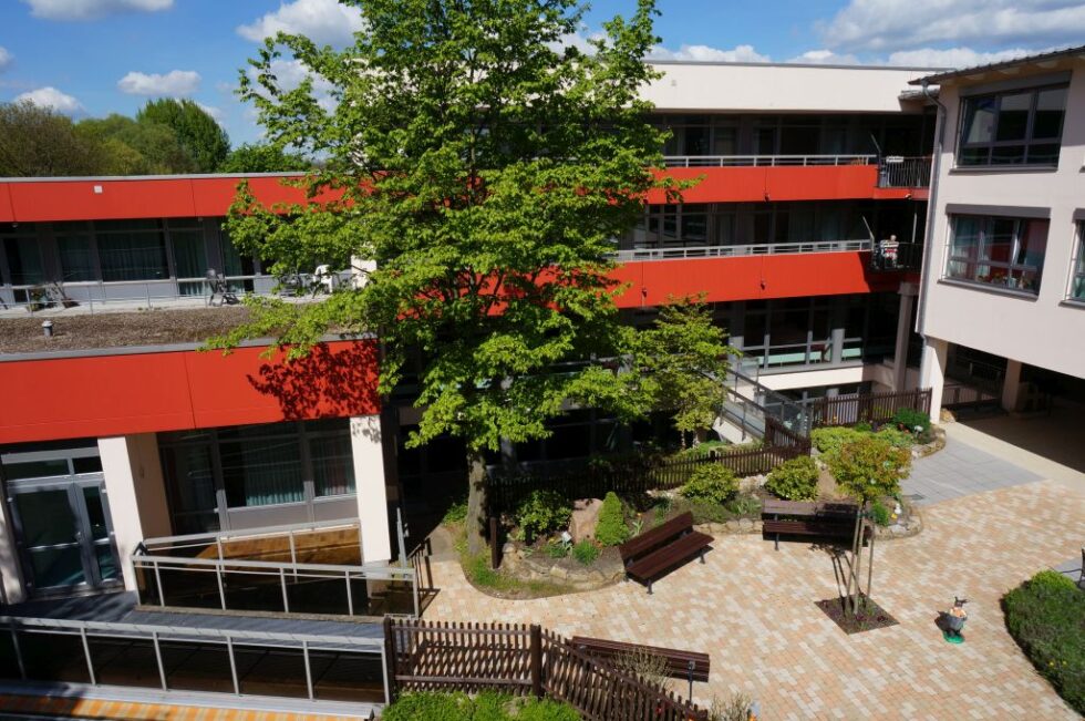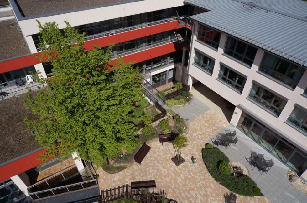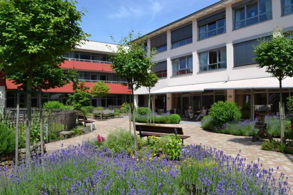 Unser begrünter Innenhof bietet eine idyllische Oase der Entspannung und Erholung. Viel Grün und bunte Farbtupfer durch die jahreszeitlich blühenden Blumen erlauben ansprechende Sinneserfahrung für unsere Bewohner. Auf dem geschützten Gelände kann man gemütlich flanieren und sich auf den zahlreichen Bänken, ja sogar in einem Strandkorb, niederlassen.