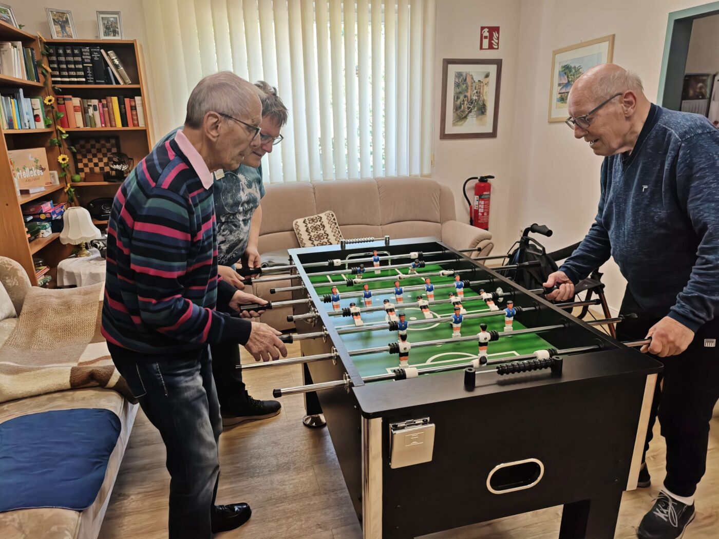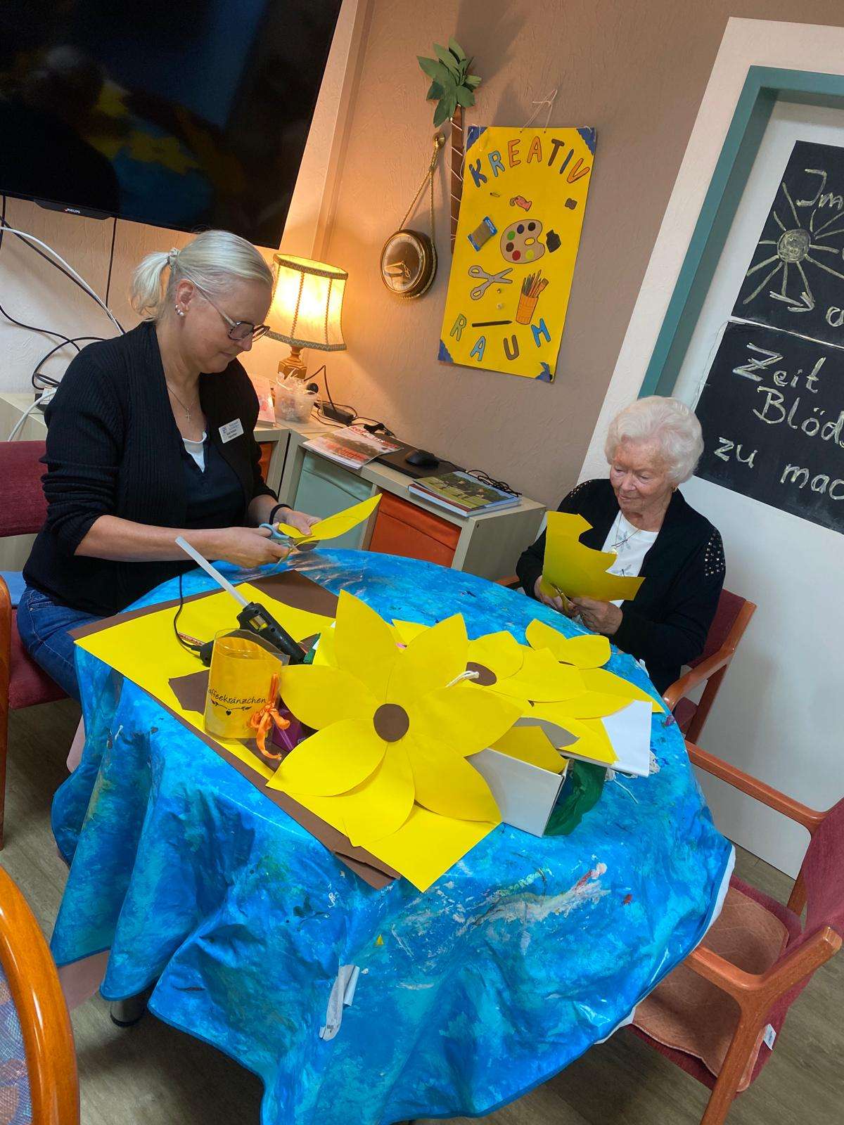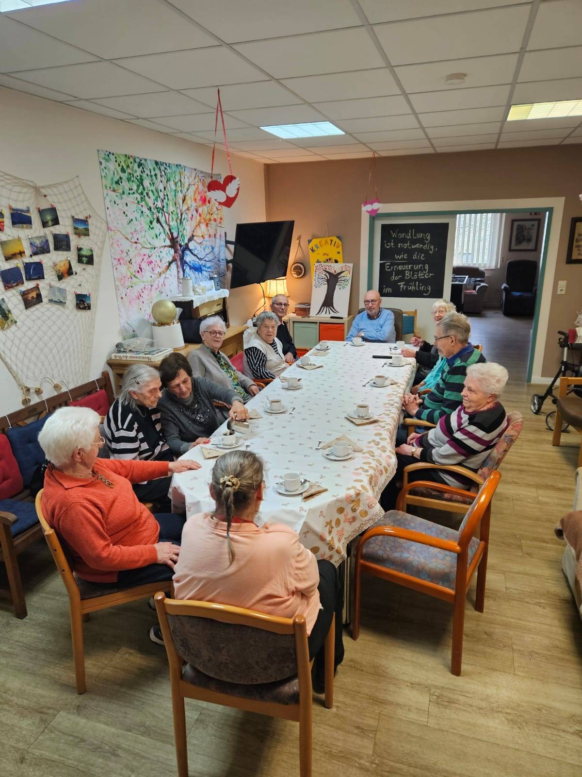 Bei uns versuchen wir unseren Gästen gezielt wieder tagestrukturierende Elemente anzubieten: Feste Tage und Zeiten des Besuchs. Die Begegnung mit vertrauten Menschen und der Austausch mit ihnen. Gemeinsame Mahlzeiten. Regelmäßige Bewegungseinheiten. Pflege kleinerer und größerer Rituale, jahreszeitlicher Aktivitäten und Feste.